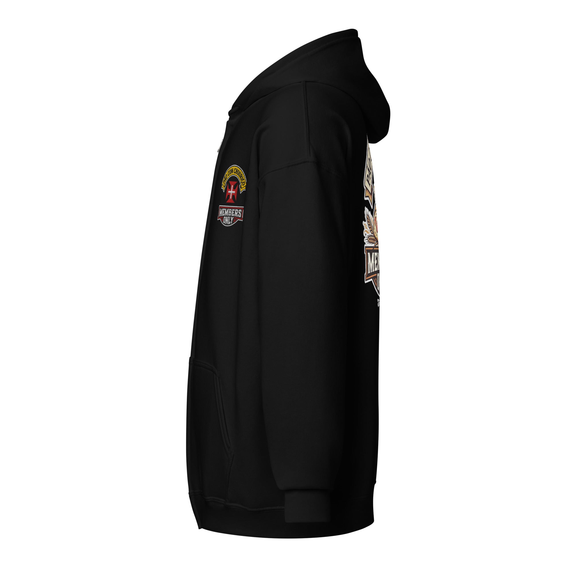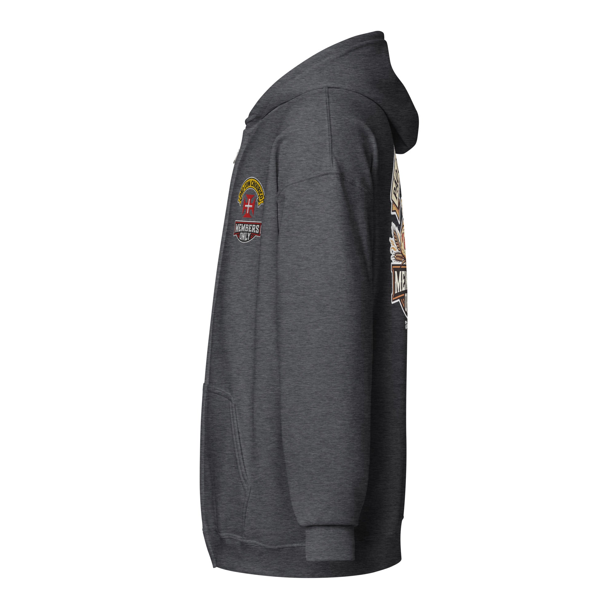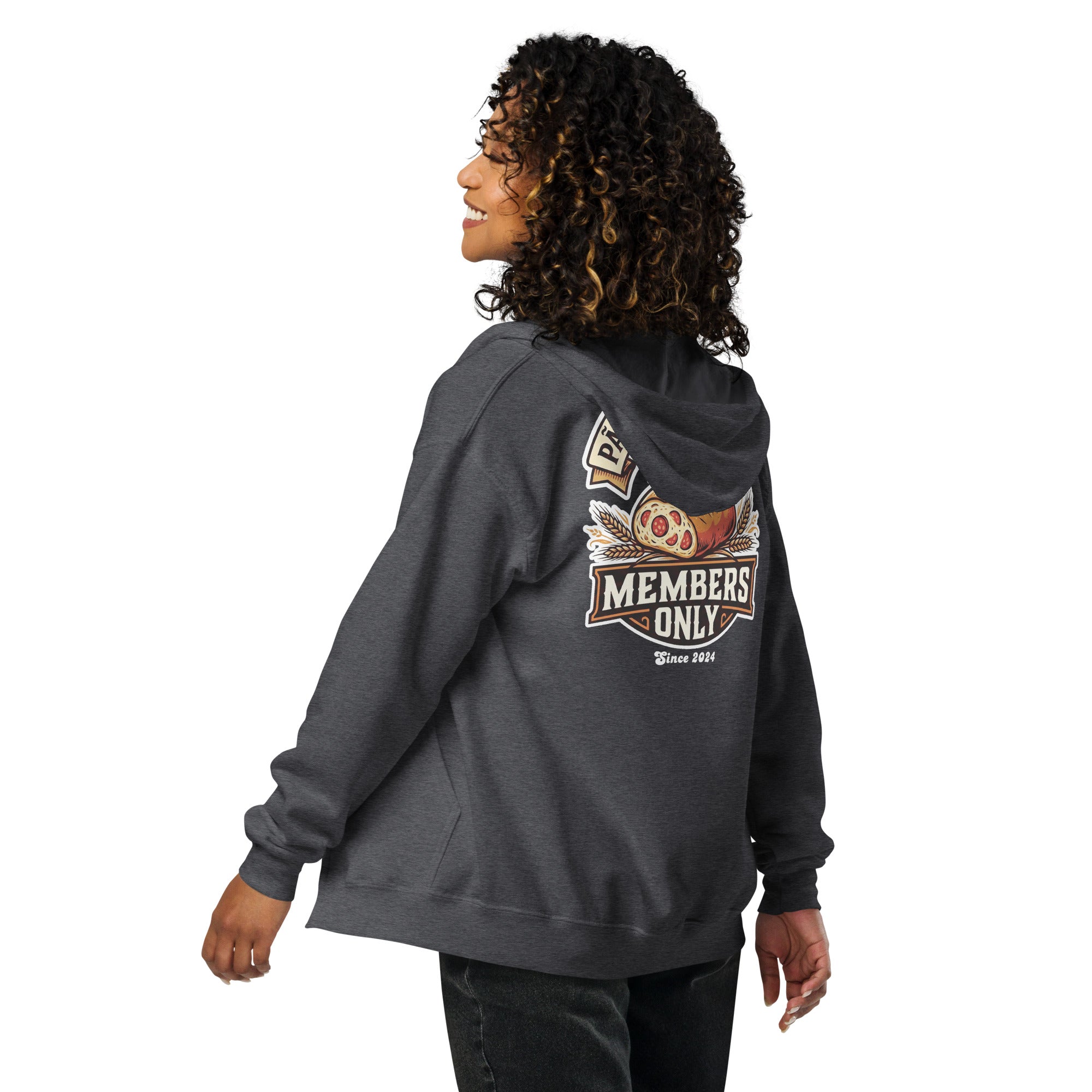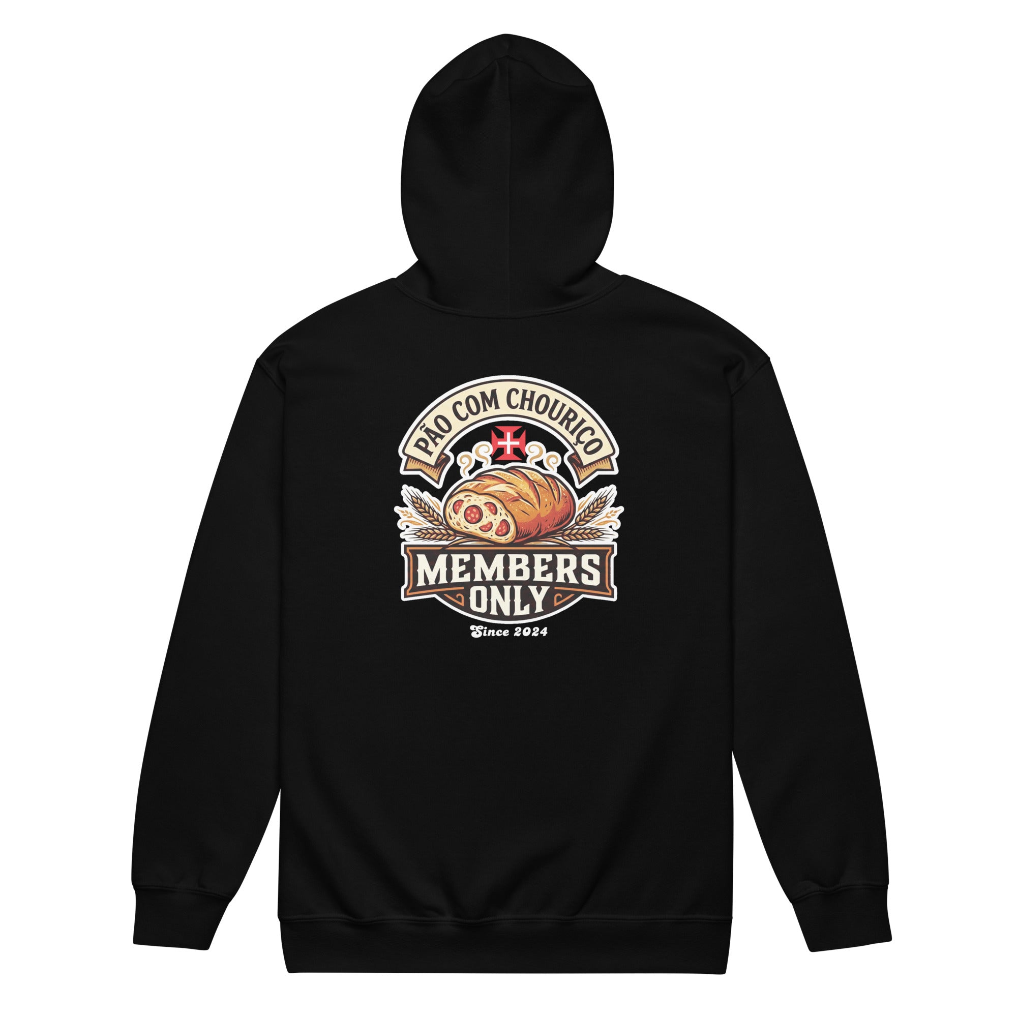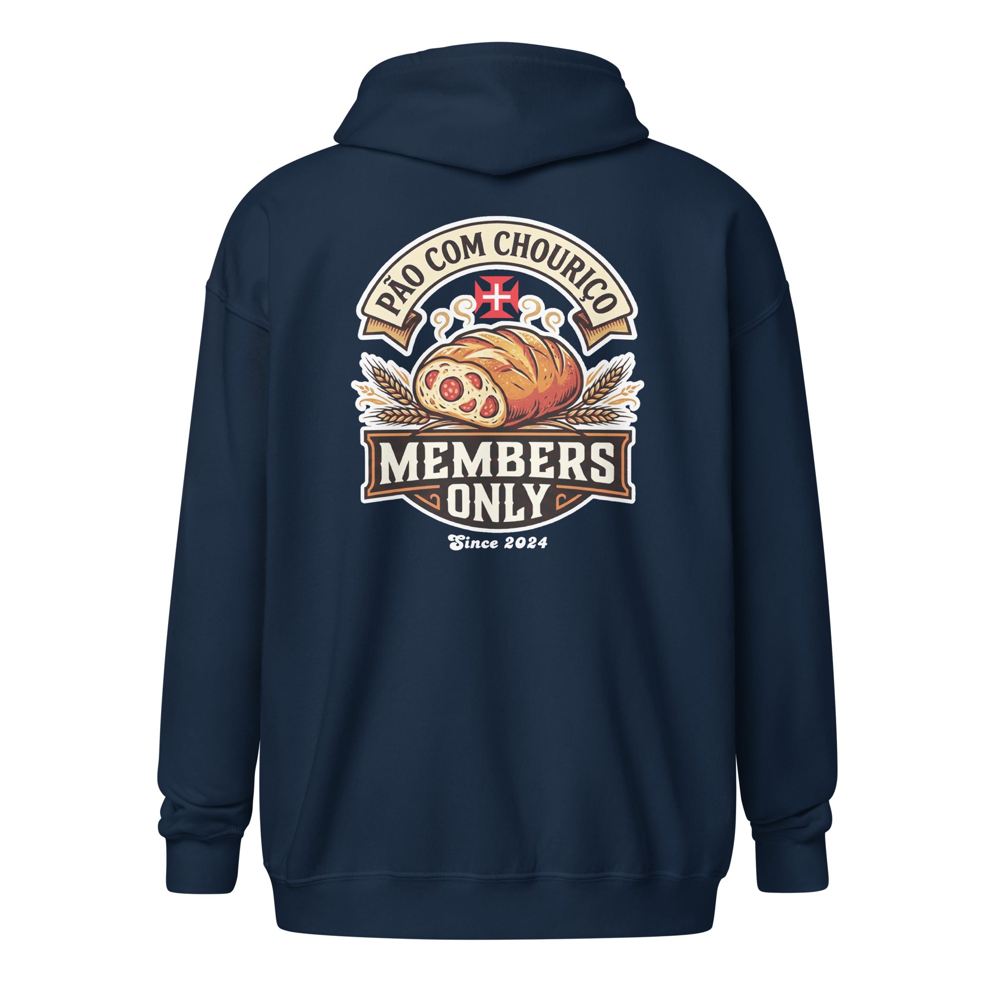 Pão Com Chouriço® Members Only Unisex heavy blend zip hoodie. Designed with style and comfort in mind, this hoodie will quickly become your new favorite. It’s made from soft fleece inside and outside, with a sturdy metal zipper, convenient front pockets, and a hood with color-matched drawstrings.