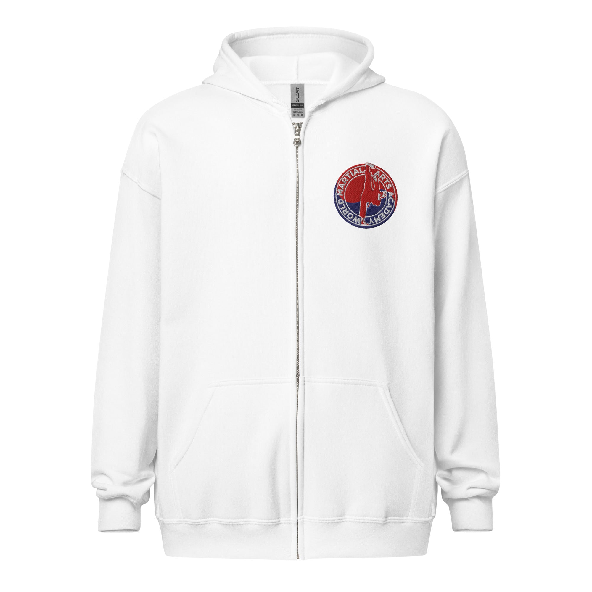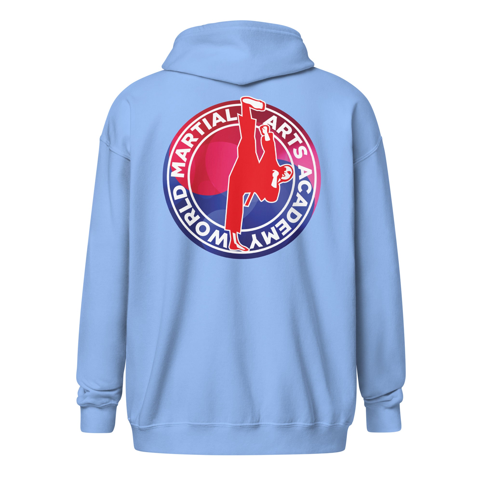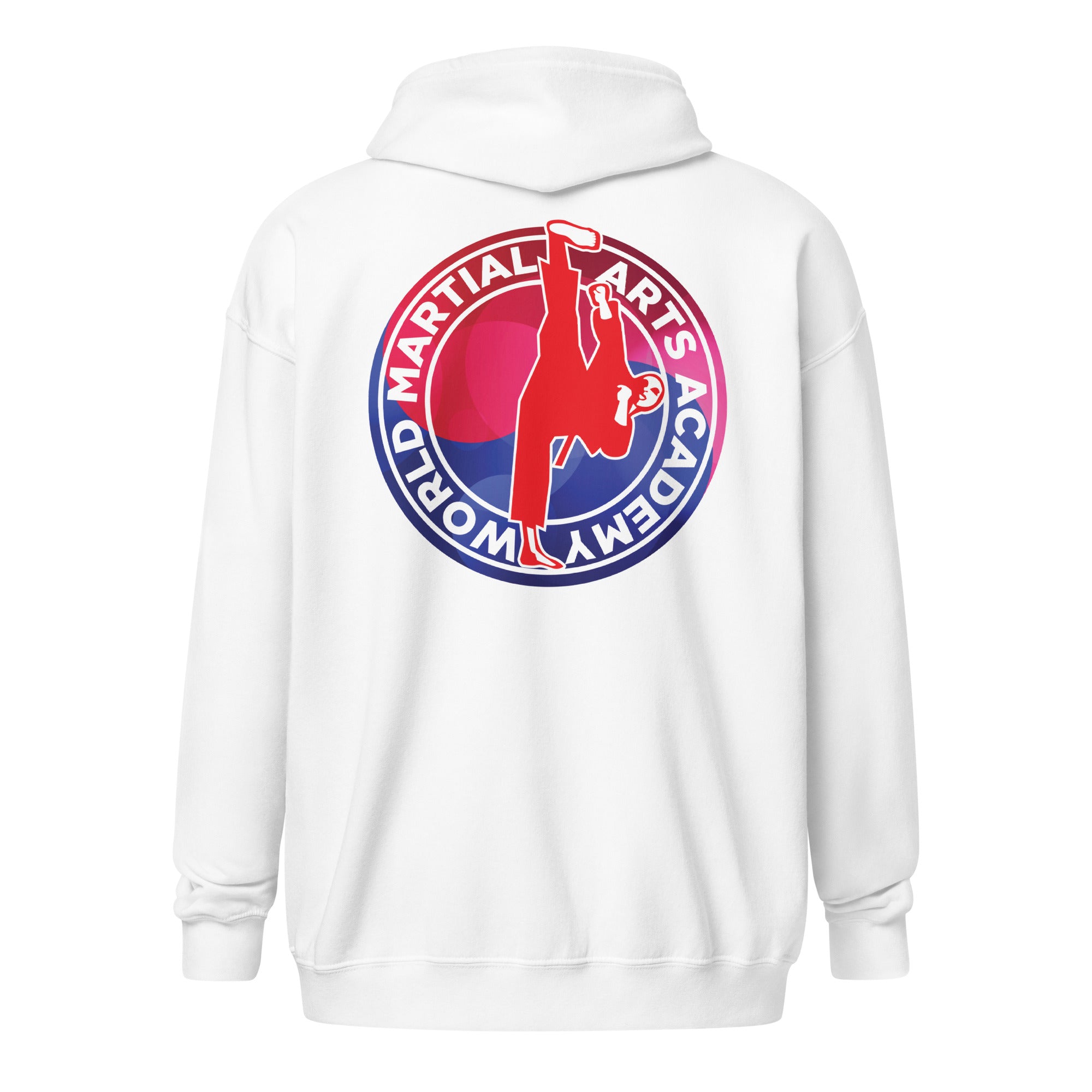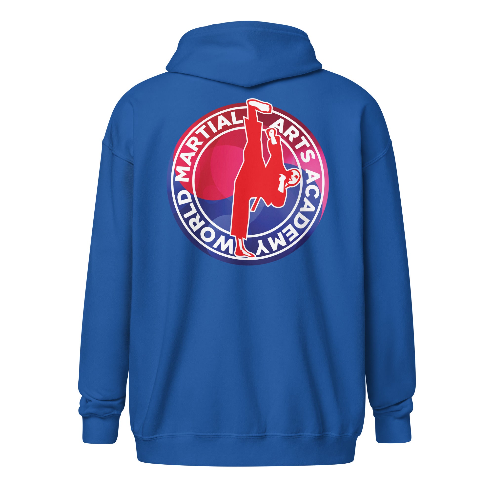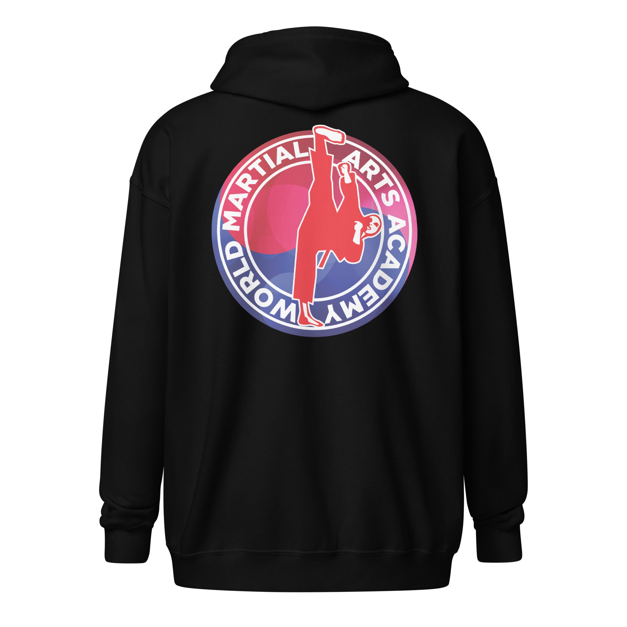 World Martial Arts Academy Unisex heavy blend zip hoodie, Designed with style and comfort in mind, this hoodie will quickly become your new favorite. It’s made from soft fleece inside and outside, with a sturdy metal zipper, convenient front pockets, and a hood with color-matched drawstrings.